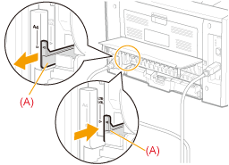 Stellen Sie den blauen Hebel für das Papierformat (A) an die richtige Position.