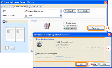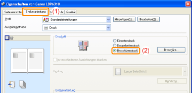 Vorsichtsmaßnahmen für den BroschürendruckBerühren Sie beim Broschürendruck das Papier nicht, bis es vollständig ausgegeben wurde. Das Papier wird nach dem Bedrucken der Vorderseite zuerst teilweise ausgegeben und dann zum Bedrucken der Rückseite erneut eingezogen.