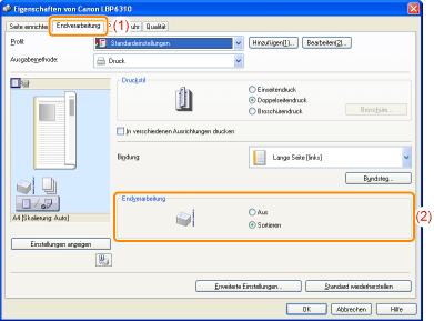 Angeben der Einstellung mithilfe der VorschauSie können eine Papierausgabemethode auch angeben, indem Sie mit der rechten Maustaste in die Vorschau klicken, wenn [