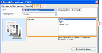 Wenn Sie den für den Inhalt des Dokuments entsprechenden Modus auswählen, können Sie mit geeigneten Einstellungen drucken.