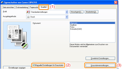 Aktivieren Sie das Kontrollkästchen [Manuelle Einstellungen für Graustufen].
