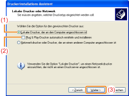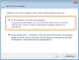 Wählen Sie [Lokaler Drucker, der an den Computer angeschlossen ist] aus.