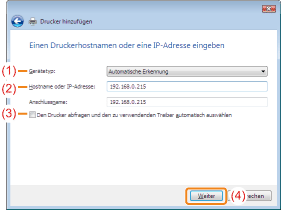 Deaktivieren Sie das Kontrollkästchen [Den Drucker abfragen und den zu verwendenden Treiber automatisch auswählen].