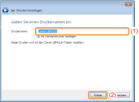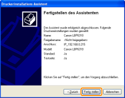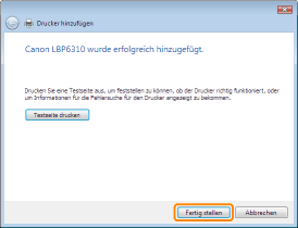 Wenn [Als Standarddrucker festlegen] angezeigt wird, wählen Sie aus, ob der Drucker als Standarddrucker verwendet werden soll. (Windows 7 und Server 2008 R2)