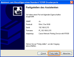 Wenn Sie sich über den in [Druckername oder -IP-Adresse] ([Druckername oder IP-Adresse] für Windows 2000) einzugebenden Wert nicht sicher sindDer einzugebende Wert hängt davon ab, wie die IP-Adresse des Druckers festgelegt wurde.