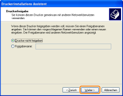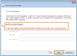 Wählen Sie aus, ob der Drucker freigegeben werden soll (ob der Computer, auf dem der Druckertreiber installiert wird, als Druckserver verwendet werden soll).