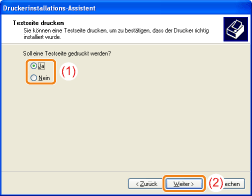 Wählen Sie aus, ob eine Testseite gedruckt werden soll.