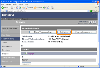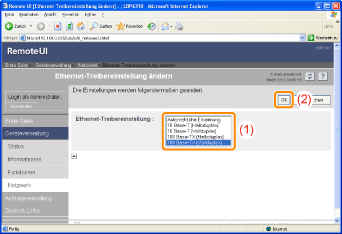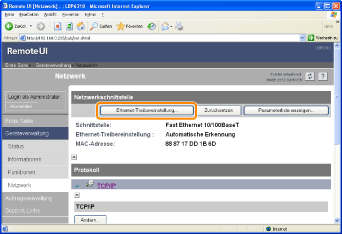 In Remote UI können Sie die Übertragungsgeschwindigkeit und den Übertragungsmodus ändern, indem Sie von Ihrem Web-Browser über das Netzwerk auf den Drucker zugreifen.