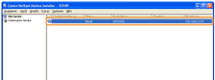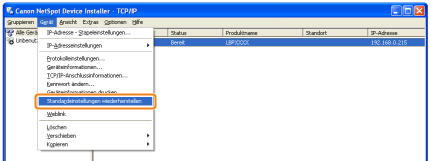 Wählen Sie den Drucker aus, für den Sie die Netzwerkeinstellungen initialisieren möchten.