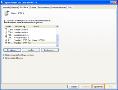Sie können erst drucken, wenn Sie den Anschluss geändert haben.