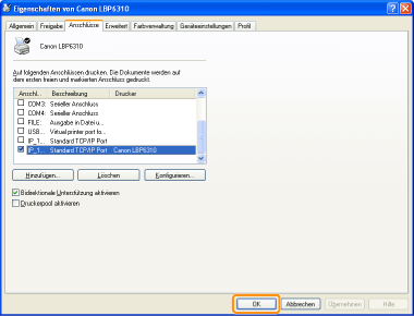 Wenn Sie sich über den in [Druckername oder -IP-Adresse] ([Druckername oder IP-Adresse] für Windows 2000) einzugebenden Wert nicht sicher sindDer einzugebende Wert hängt davon ab, wie die IP-Adresse des Druckers festgelegt wurde.