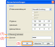 Geben Sie das Administratorpasswort für den Drucker ein (das Passwort, das in Remote UI angegeben wird).