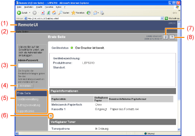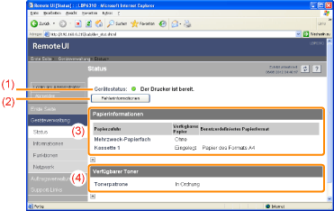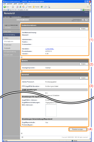 [Geräteinformationen]Zeigt allgemeine Informationen zum Drucker an.