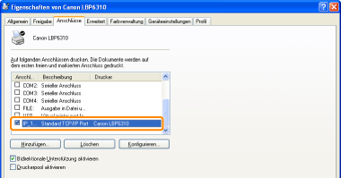 Wählen Sie den korrekten Anschluss aus.