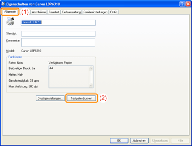 Klicken Sie auf [Testseite drucken], um eine Testseite zu drucken.