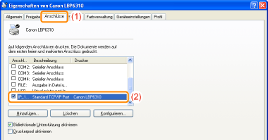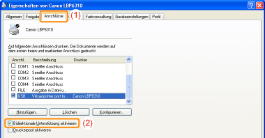 Deaktivieren Sie das Kontrollkästchen [Bidirektionale Unterstützung aktivieren] nicht.Wenn das Kontrollkästchen deaktiviert wird, können Sie keine Druckvorgänge durchführen.