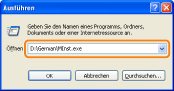Geben Sie im Menü [Start] in [Suche starten] oder [Programme/Dateien durchsuchen] "D:\German\MInst.exe" ein.