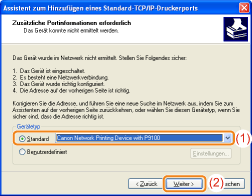 Wählen Sie [Standard] und dann [Canon Network Printing Device with P9100] aus.