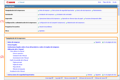 Muestra todos los capítulos y secciones del e-Manual. Haga clic en un elemento para visualizar los contenidos.