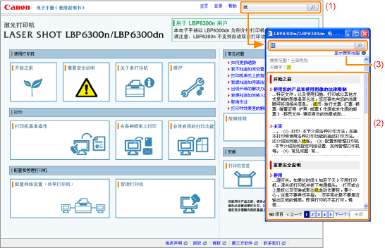 此外,AND(与)搜索在电子手册中可用,这样就可以通过输入两个或多个关键字使搜索结果更精确。输入关键字时,在关键字之间输入空格。
