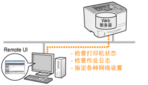可从远程位置指定各种设置或操作打印机。“远程用户界面”