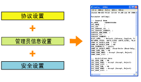 通过访问打印机的 FTP 服务器,可指定网络设置、安全设置等。由于设置项目列在文件中,因此一次可指定多个项目。