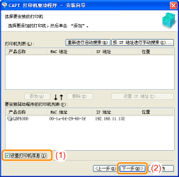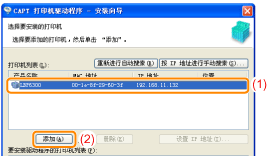 将 [LBP6300] 添加到 [要安装驱动程序的打印机列表] 中。