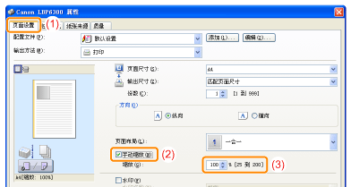 如果从 [纸张尺寸] 选择不同的纸张尺寸,打印数据将自动放大或缩小。
