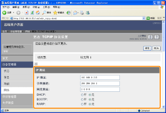 有关使用 DHCP、BOOTP 或 RARP 时端口设置步骤的详细信息请参阅“设置端口的值”或向网络管理员咨询。