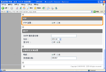 可使用命令提示符访问打印机的 FTP 服务器指定设置。