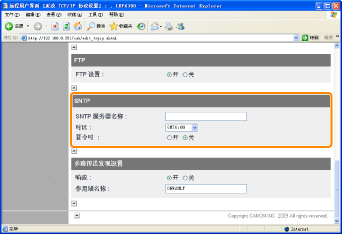 在 [SNTP 服务器名称] 中输入 SNTP 服务器的 IP 地址。