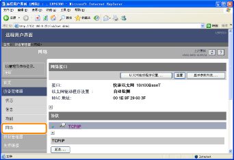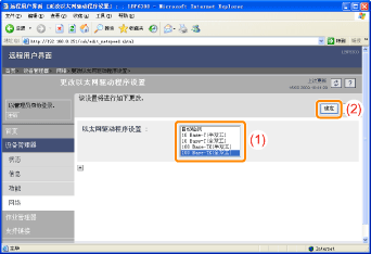 在远程用户界面中,可通过网络从 Web 浏览器访问打印机更改传输速度和传送模式。