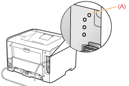 按下重置按钮 (A) 的同时启动打印机会初始化网络设置。