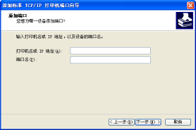 视打印机 IP 地址的设置方法而定,在端口设置过程中显示的以下屏幕上,[打印机名或 IP 地址] 中输入的值有所不同。