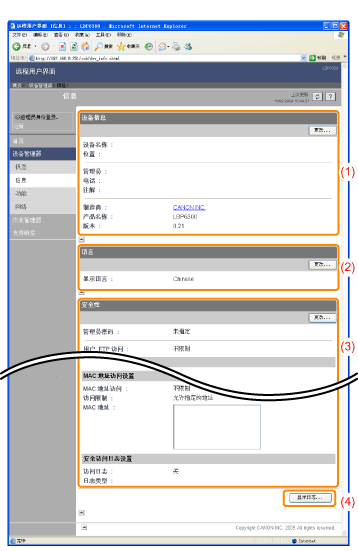 [安全性]显示安全设置的信息,如管理员密码和访问限制。