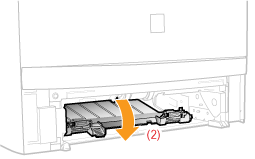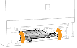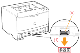 抓住绿色卡钩 (A),打开双面打印传输导板。