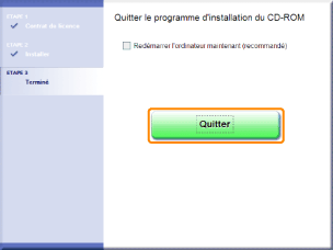 Lorsque l'écran suivant apparaît, vous pouvez retirer le CD-ROM du lecteur.