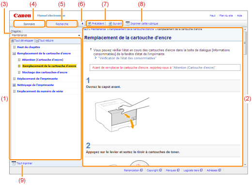 Cliquez sur ces boutons pour passer à la rubrique précédente ou suivante.