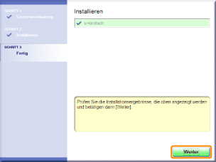 Warten Sie einen Moment, bis die Installation abgeschlossen ist. (Die Installation der e-Anleitung kann einige Zeit dauern.)