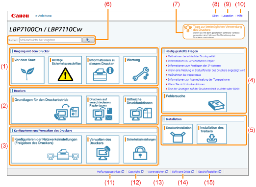 Informationen zur Verwendung der e-Anleitung werden angezeigt.
