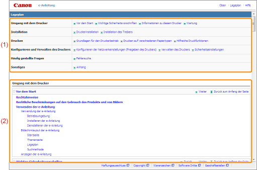 Zeigt die Kapitel der e-Anleitung an. Klicken Sie auf ein Thema, um eine detaillierte Liste des Kapitels anzuzeigen.