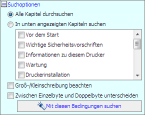 ![]() Die Suchoptionen können zur Festlegung des zu durchsuchenden Kapitels, der Beachtung von Groß-/Kleinschreibung und der Differenzierung zwischen Ein- und Zwei-Byte-Zeichen verwendet werden.