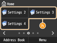 ![]() | <Favorite Copy Settings> <Favorite Fax Settings> <Favorite Scan Settings>Displays frequently used settings registered for each of the Copy, Fax, and Scan functions. <ID Card Copy> is pre-registered to <Settings 1>. Registering Frequently Used Copy Settings |
