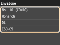 <Envelope> is selectable as a paper size only when <Drawer 1> is selected.