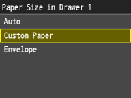 2 | Tap a registered custom paper size. Tap <Custom> to specify a paper size. |