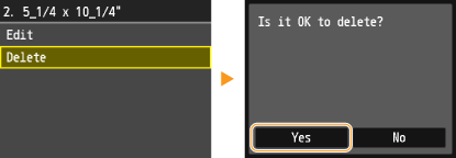 If paper sizes <1> to <3> have already been registered, either change or delete the setting to continue. The procedures for changing and deleting these settings are described below.