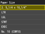 The paper sizes that are registered in the procedure above are displayed on the screen for selecting the paper size.