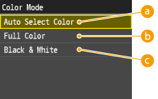 ![]() | This machine comes with the <Auto Select Color> mode, which recognizes whether an original is in color or black-and-white, and then automatically switches between the Full Color mode and Black mode. You can also manually switch between <Full Color> and <Black & White> modes whenever necessary. |