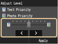 This setting gives priority to image quality over speed. You can also adjust the level of priority given to the quality of the text or photos. Tap