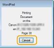 To cancel printing, click [Cancel] when the screen shown above is displayed. After the screen disappears or if the screen is not displayed, you can cancel printing in other ways.